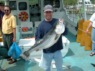 Gabe caught a beautiful 40 inch striper, largest of the day. |