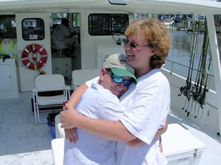 The Joel Bratman (2nd from left) crew after a great afternoon on the Bay, catching fish and eating cake... |