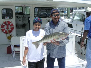 More of Addie's crew with a fine striper of about 30 inches. |