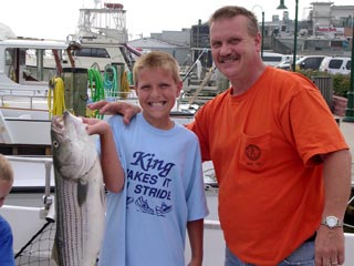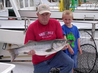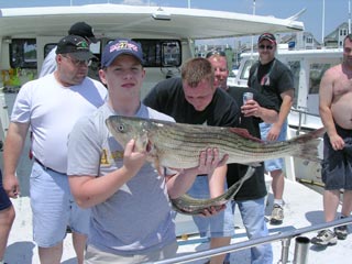 Close, but no cigar. This 33 inch striper was a fine catch, but not quite big enough to place in the tournament. |