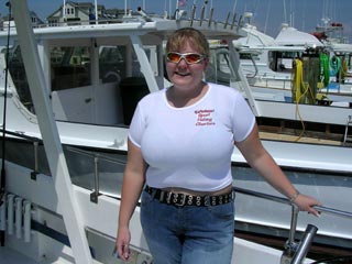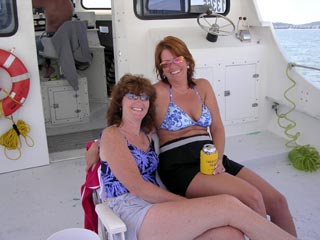 Birthday girl Melissa (2nd from left) with Donna, Ray, Tammy, Mary Louise, and Deena (front), out for a day on the Bay. |