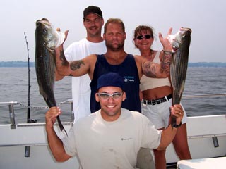 Here's a crew from Tom Friday Inc., led by Tom Friday of course (2nd from right) after a fine morning catching stripers on June 2. |