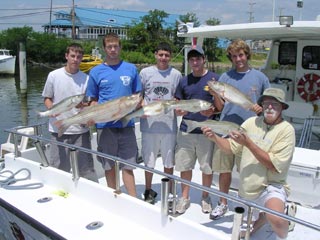 Here's the Hazen Wilson (far right) crew, shown with a great catch of large stripers, considering that it's mid-July... |