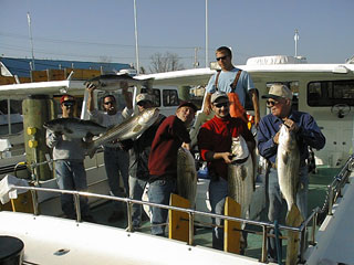Here's the Dave McGinnis crew from November 18 with part of their catch of rockfish. From left to right, that's Kevin, Dave, Michael, Danny, Larry, and Aaron. |